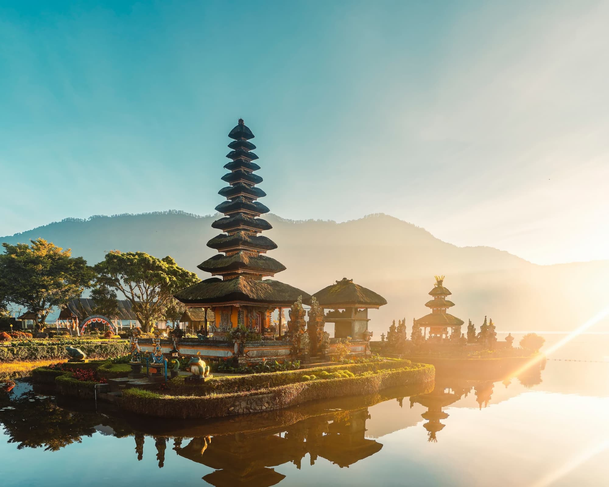 • Traslado hacia el sur de Bali con paradas en los templos más icónicos: Tanah Lot, el templo sobre las olas dedicado a la diosa del mar, y Taman Ayun, jardín flotante y antiguo templo real. Continuación al hotel de playa.