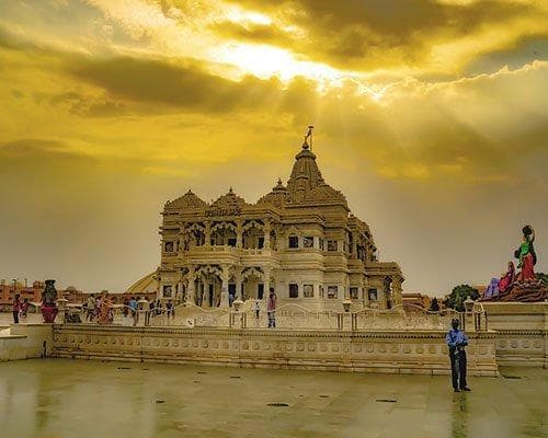• El amanecer nos lleva por carretera hasta Mathura, cuna del dios Krishna. Aquí la vida estalla en colores durante el Festival de Holi, la celebración de la alegría y la unidad.